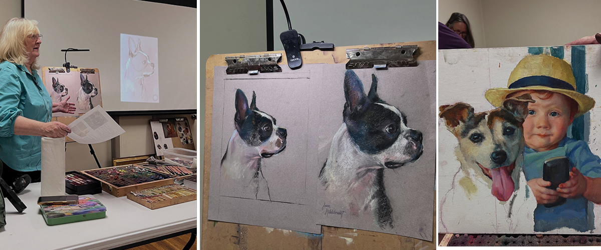 What a wonderful presentation by Jean Hildebrant at the GVAL November member meeting. Thank you so much Jean for sharing some of your art wisdom and exceptional art pieces! Members learned a great deal about creating animal and people portraits. Jean’s information on pastel products was helpful as well. Artists who want to learn more about painting animals, enroll in Jean’s class scheduled to start in February at Scottsdale Art School. To see more of Jean’s work, visit her website here.
