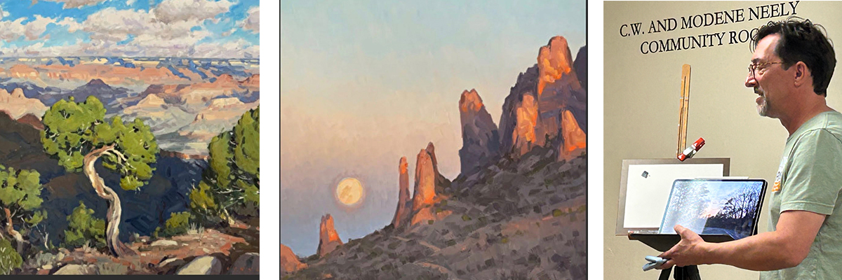 Thank you to our guest speaker Tom Conner. Tom grew up in North Carolina and was drawing and painting from an early age. He graduated from North Carolina State University’s School of Design with a degree in architecture while continuing to pursue drawing and painting in his free time. It was after moving to Arizona that his true arts education began, in the deserts and forests of the southwest. Developing a love of great open spaces, hiking, camping and rock climbing soon filled his free time, where he absorbed the beauty of nature and learned to observe his surroundings. Since then he has explored his love of the natural world through painting, both plein air and studio works, always in the pursuit of capturing greater truths.